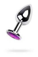 Анальная втулка Metal by TOYFA, металл, серебряная, с фиолетовым кристаллом, 8 см, d 3 см, 165 г (0T