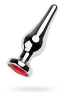 Анальная втулка Metal by TOYFA, металл, серебряная, с красным кристаллом, 10 см, d 3 см, 95 г (0T-00