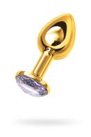Анальная втулка Metal by TOYFA, металл, золотая, с белым кристаллом, 7,5 см, d 3 см, 145 г (0T-00002