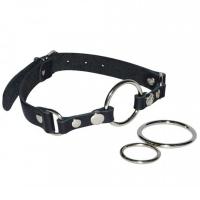 Кляп-рамка изготовлен из натуральной высококачественной кожи чёрного цвета. Особенностью данного девайса, являются сменные кольца, которые легко отстегнуть при помощи кнопок.